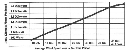 kilowatt (1000 watt-hours per day) at wind speeds of 16 knots (a